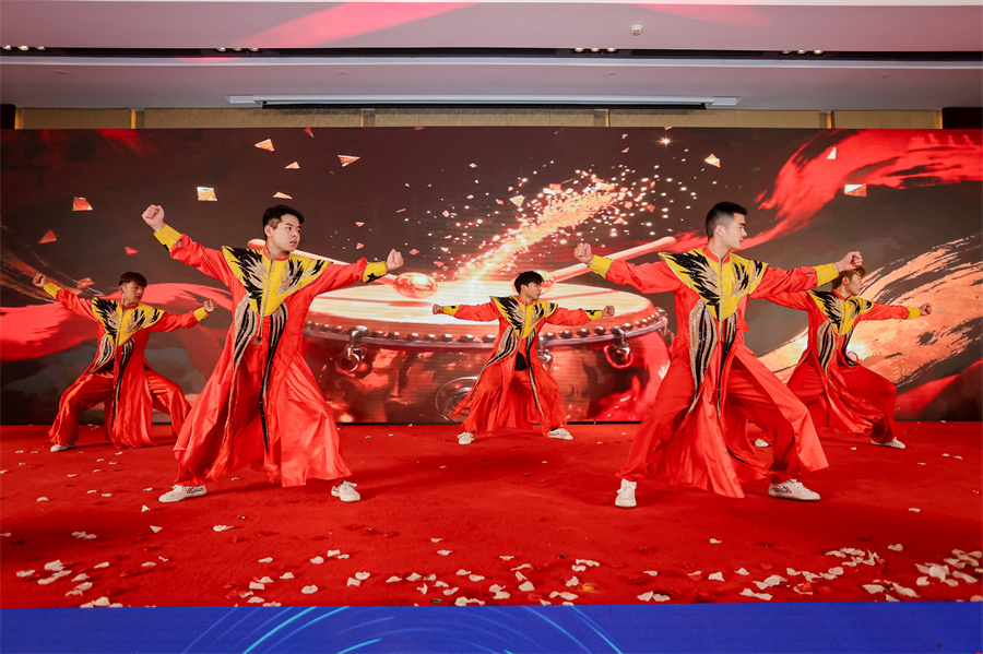 思亿欧第十二届全国渠道盛典答谢晚宴在璀璨夜色中拉开帷幕。一场气势恢宏的开场武术《马踏山河》震撼全场,瞬间点燃了现场热情。随后,徐总登台发表真挚祝酒词,向莅临的每一位嘉宾致以深切感谢。