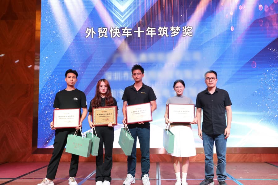 现场,思亿欧外贸快车华南大区渠道总监任传可先生、思亿欧外贸快车深圳服务中心负责人李聪先生为获奖企业分别颁发“外贸快车最佳操盘手”、“外贸快车订单王”、“外贸快车外贸新势力”和“外贸快车十年筑梦奖”等奖项,旨在感谢各位合作伙伴对外贸快车的信任和支持。